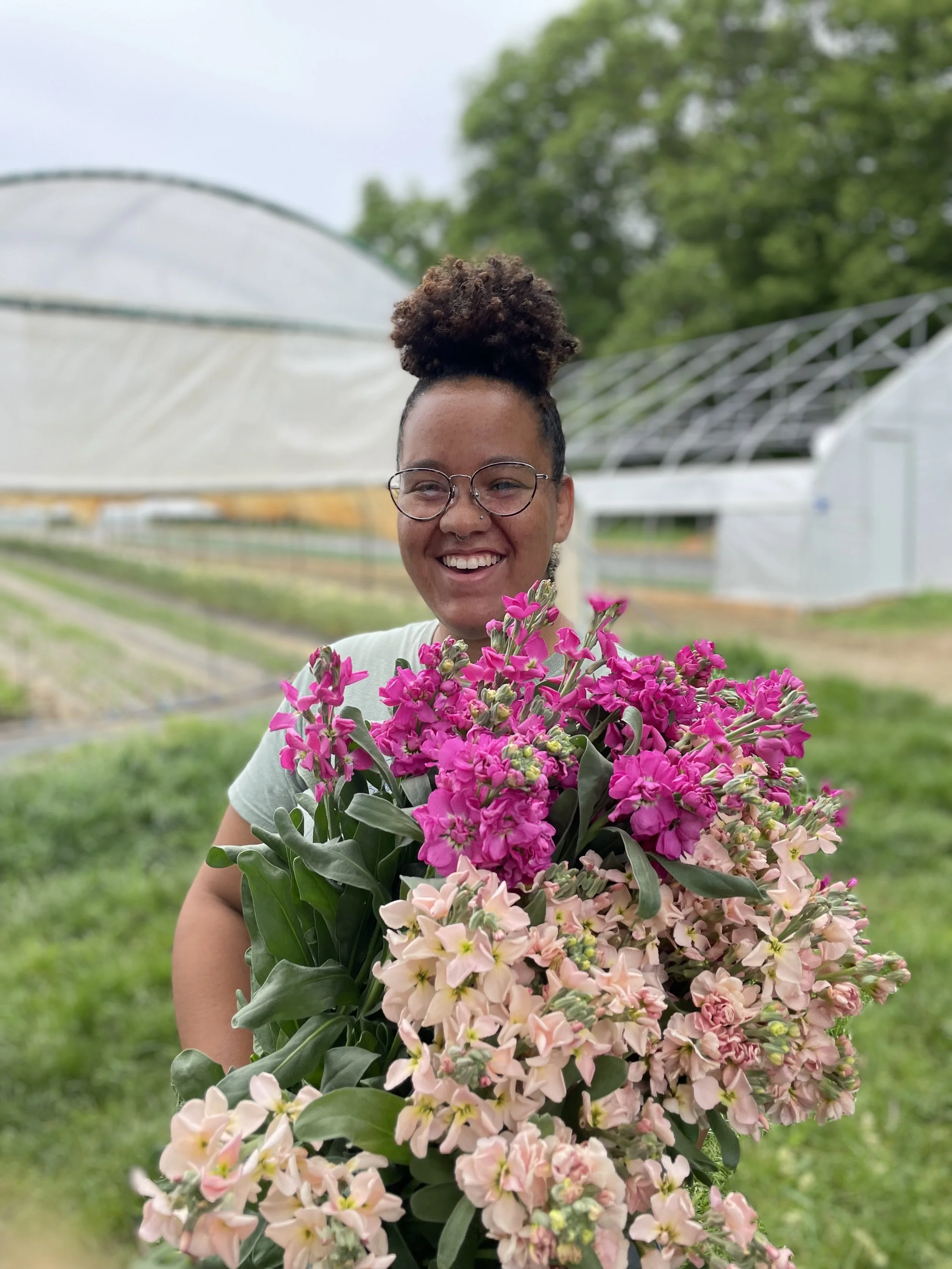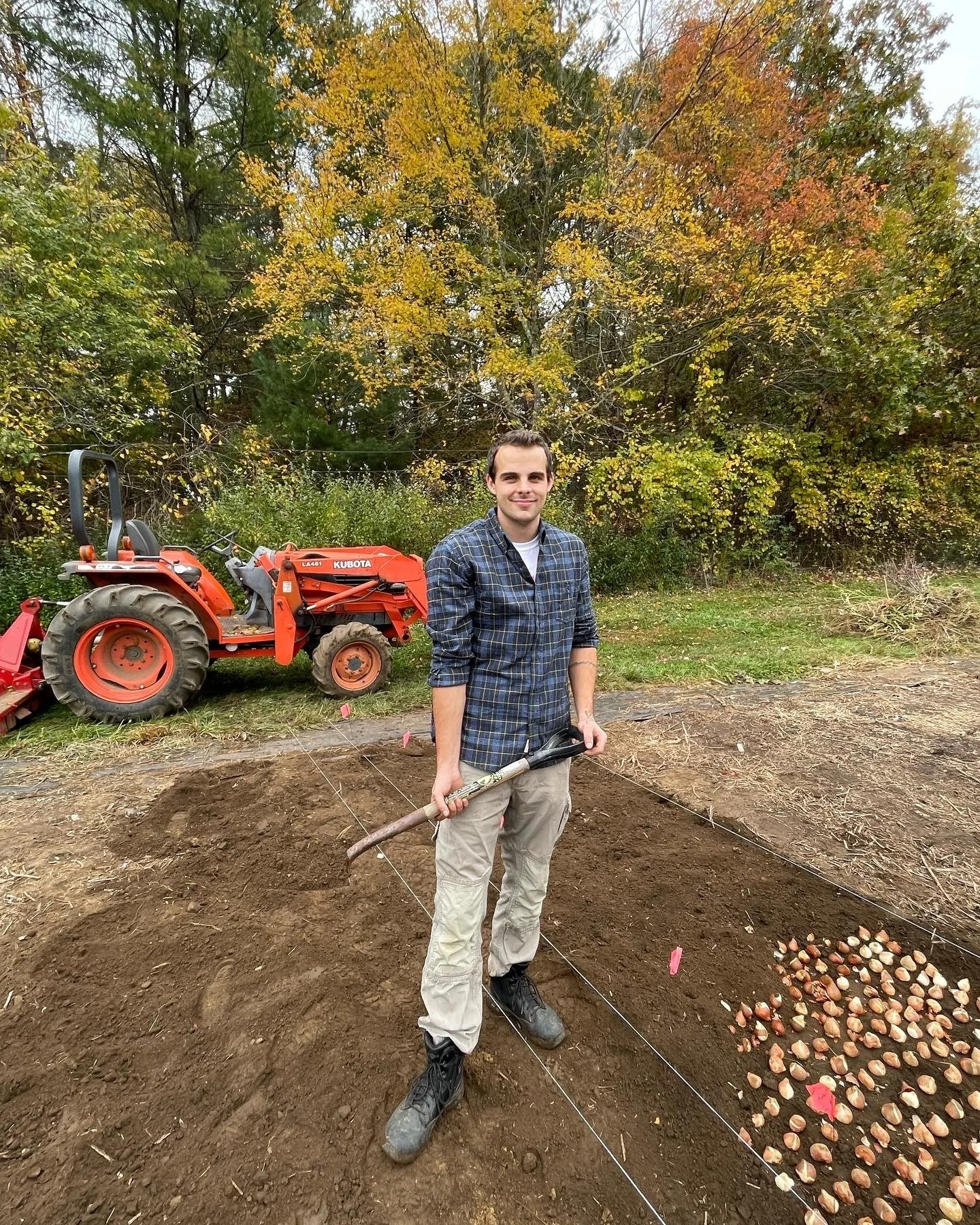 I started farming in 2020 at an organic vegetable farm while I finished my undergraduate degrees at URI. I have fallen in love with growing food for my family and flowers for my community to enjoy. Over the past 3 years I have gained a tremendous amount of knowledge from my farming mentors and will continue to build and share this wisdom as we grow our farm. While working on a veggie farm was amazing and has given me the tools to grow for my family, flowers and design has become my main farming passion. For me flowers isn’t just about bringing beauty to people but also nurturing the land and creating an environment where native species thrive and survive.